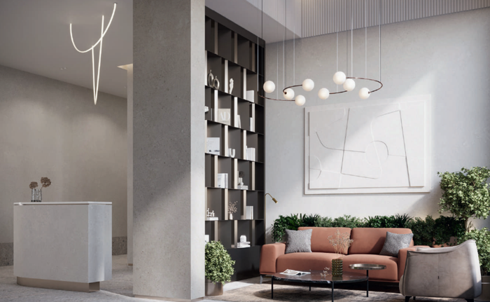 Интерьеры отвечают нуждам современного жителя. В просторном лобби с рабочей зоной вы можете проводить встречи и решать дела, не выходя из комплекса. Утром здесь тихо, удобно устроиться с ноутбуком и чашкой кофе. Днем лобби наполняется разговорами и деловой суетой, а вечером превращается в место для неформального общения с соседями.